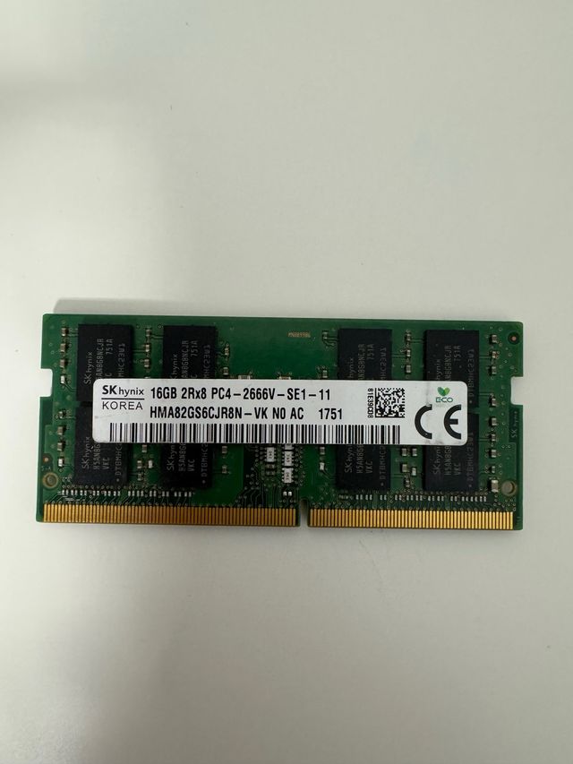 Modulo di memoria RAM SK hynix da 16GB. - Capacità: 16GB - Tipo: DDR4 - Velocità: PC4-2666V - Fattore di forma: SO-DIMM (per laptop) - Origine: Corea
