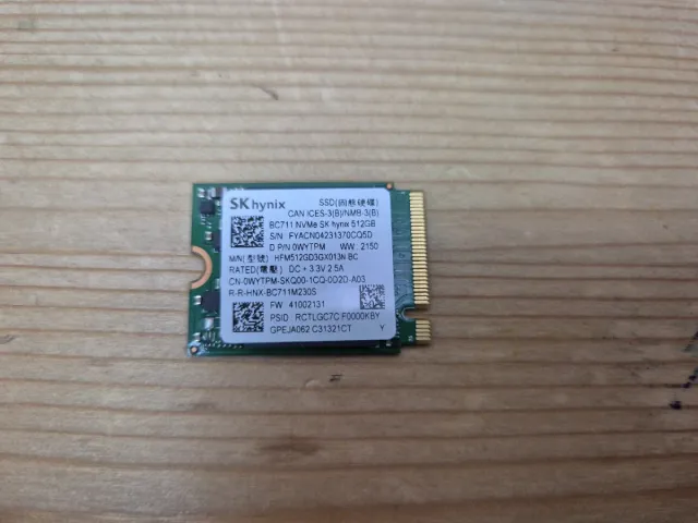 SSD NVMe SK hynix BC711 da 512 GB. - Modello: BC711 - Capacità: 512 GB - Interfaccia: NVMe - Codice produttore: HFM512GD3GXD13N - Firmware: 41002131