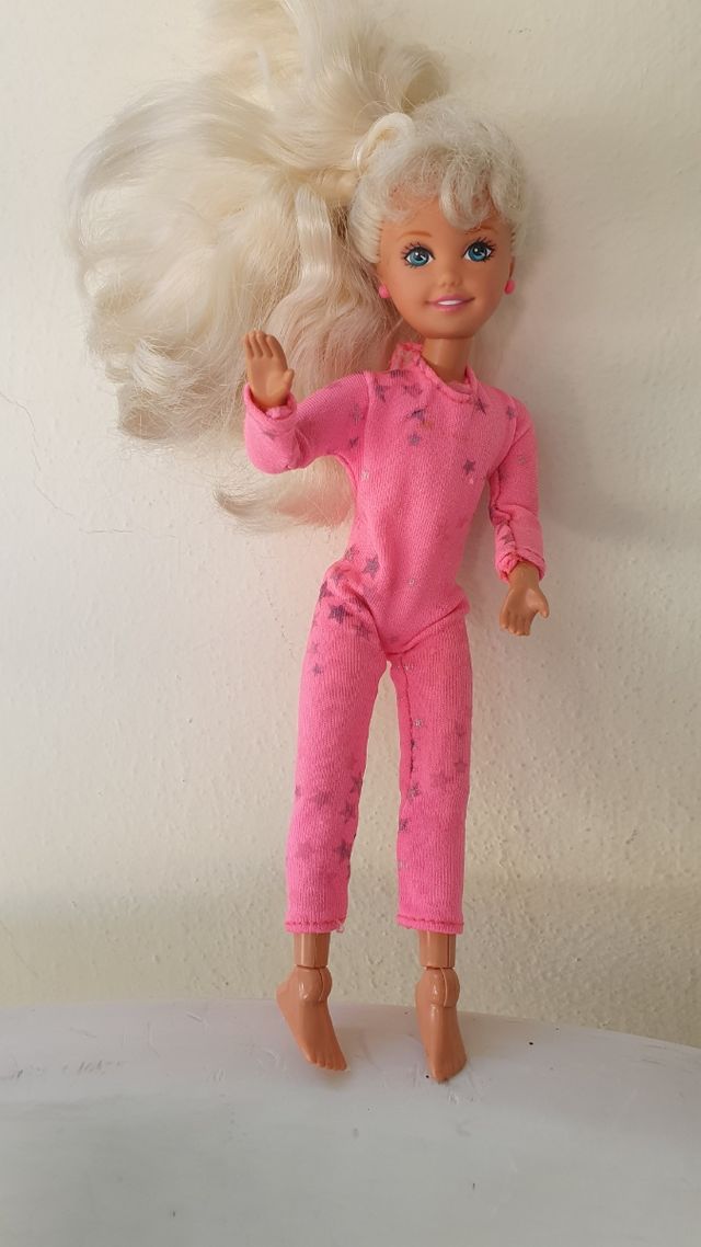 Dettagli del prodottoStacie (Anastasia) sorella di Barbie, ginnastica, articolata, anni '90 della Mattel. Altezza 20 cm. Gli orecchini sono originali. Non presenta difetti. Come nuova. Trovate altre Barbie e Shelly nel mio profilo
