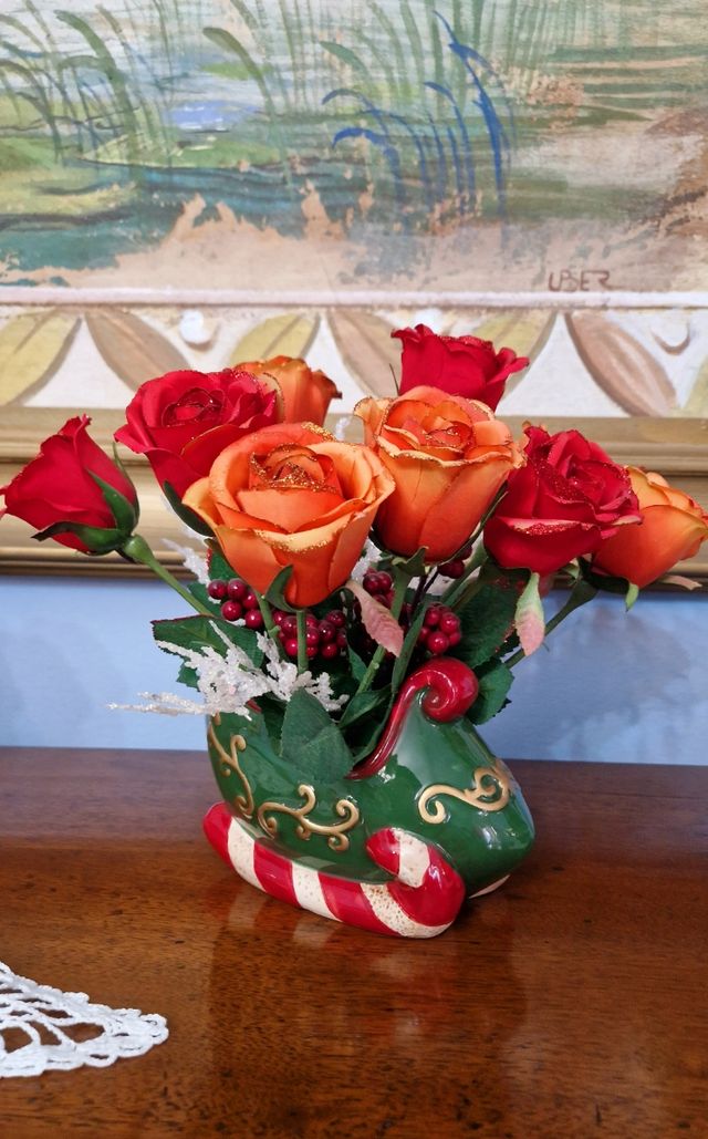 Soprammobile natalizio Con rose glitterate all'interno Non presenta difetti Praticamente nuovo!