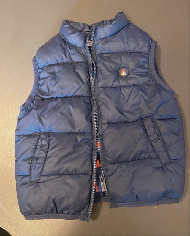 Dettagli del prodottoSmanicato imbottito blu per bambino, taglia 18/24 mesi. Presenta un logo colorato sul petto.