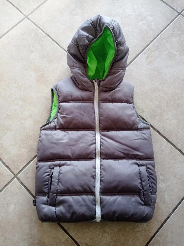 Smanicato bimbo, usato pochissimo, color grigio chiaro e interno fodera verde fluo. Tg. S (6/7anni)