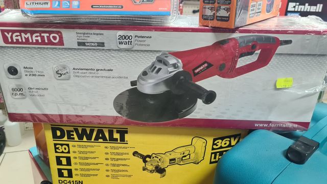 Smerigliatrice angolare Yamato SA230/D, 2000 watt. - Disco da 230 mm. - Avviamento graduale. - 6000 giri al minuto.
