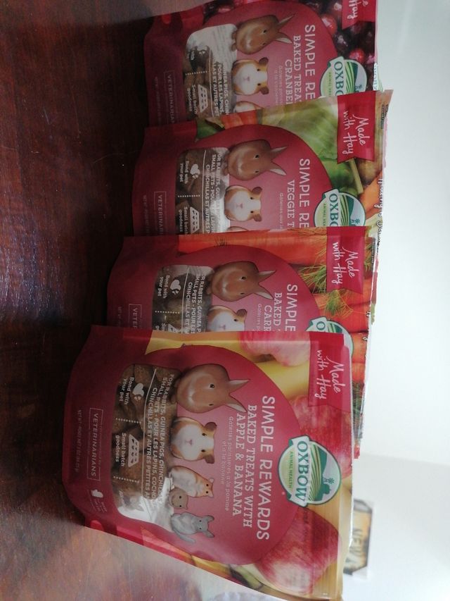 Dettagli del prodotto4 confezioni di snack Oxbow Simple Rewards per roditori, in buone condizioni.