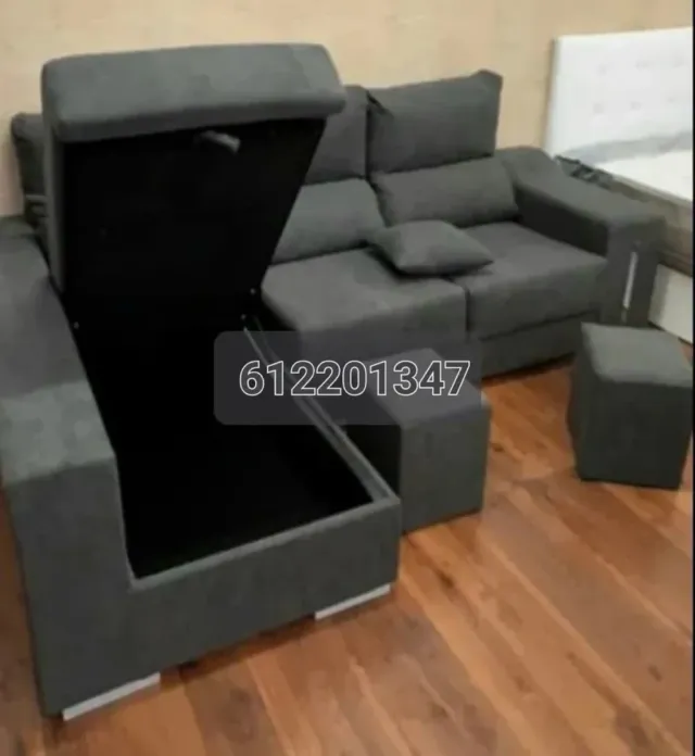 Divano Chaiselongue in Tessuto Antimacchia Aqualine, Ideale per Famiglie e Animali Domestici, Sedili Scorrevoli e Schienale Reclinabile, Include 2 Pouf e Cuscini, Grigio Scuro/Grigio Chiaro/Beige