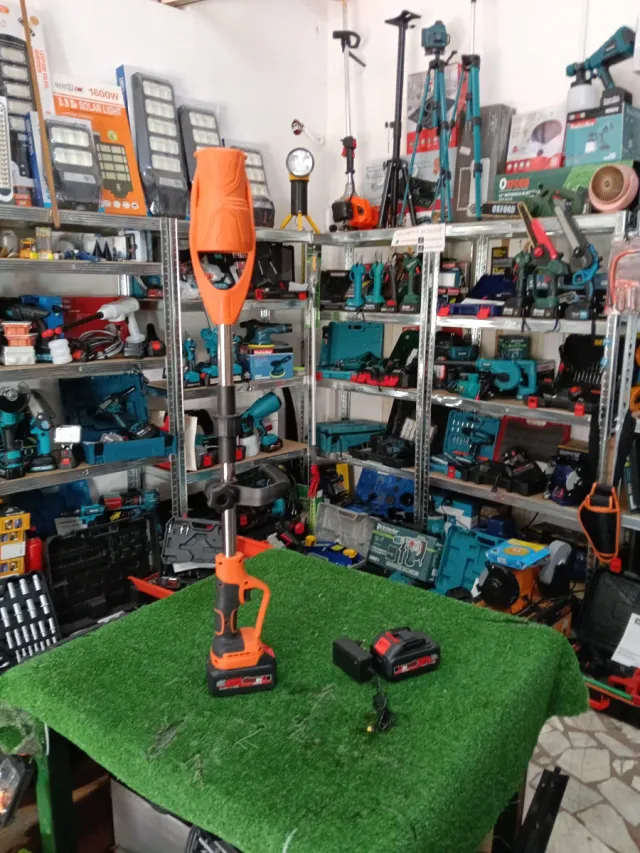 Soffiatore a batteria con asta, ideale per la pulizia di giardini e cortili. - Colore arancione e nero. - Batteria inclusa.