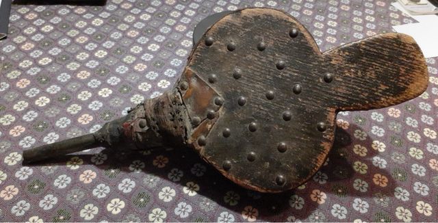 Dettagli del prodottosoffietto antico di legno e pelleper camino, origine austriaca. utilizzabile come ravvivafiamma.