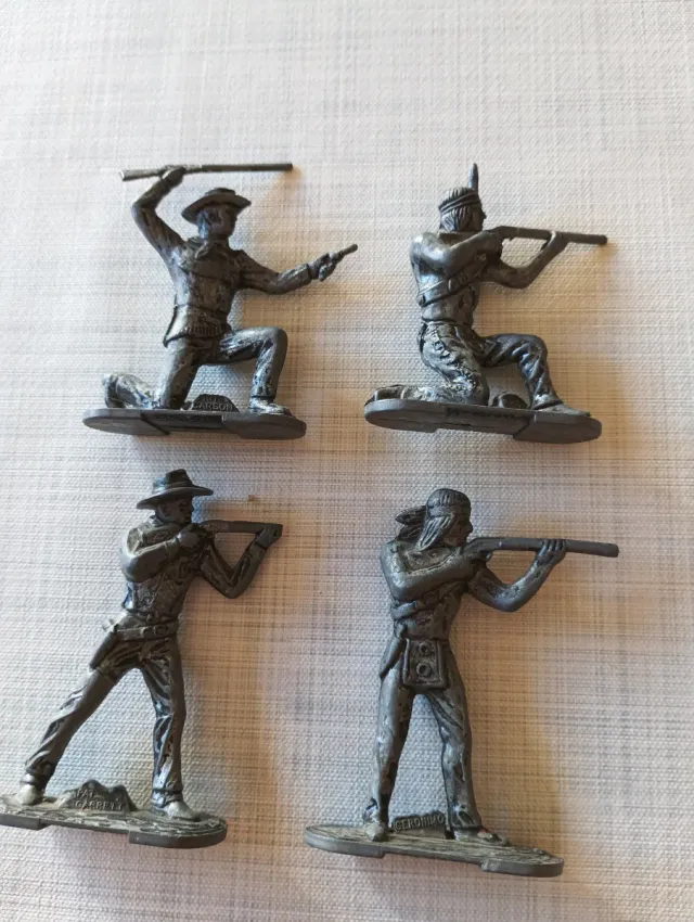 Dettagli del prodottoSet di figure di soldatini di piombo, raffiguranti indiani e cowboy. - 4 Figure dettagliate di indiani - 4 Figure di cowboy Prezzo da concordare, consultare La descrizione è stata tradotta automaticamente.