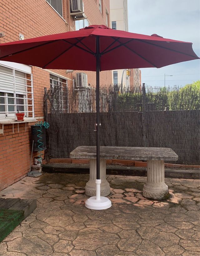 Dettagli del prodottoOmbrellone da giardino in rosso, ideale per proteggerti dal sole nel tuo spazio esterno. È di grandi dimensioni, perfetto per tavoli all'aperto.