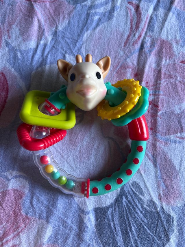 Vendo sonaglio a forma di giraffa Sophie. È colorato e in buone condizioni. - Perfetto per i più piccoli - Materiali resistenti - Divertenti elementi da afferrare