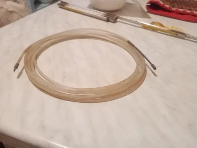 Sonda tiracavi flessibile per cavi, lunga 5 metri. - Materiale: Plastica trasparente - Lunghezza: 5 metri - Connettori alle estremità