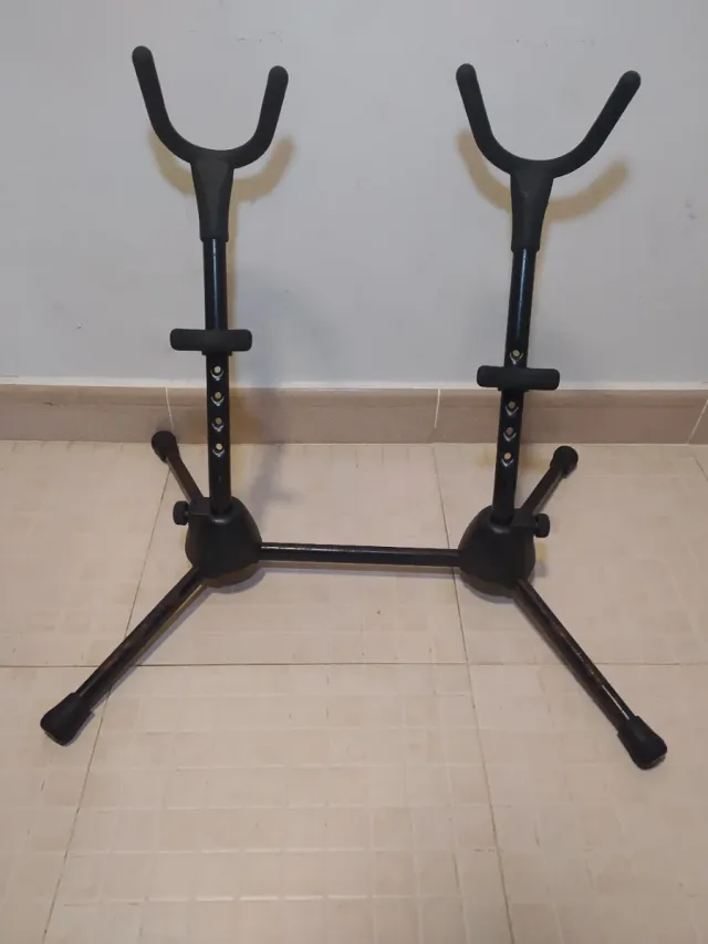 Dettagli del prodottoSupporto stabile e funzionale per due sassofoni. È stato usato e presenta segni normali di utilizzo, con leggero ossido sulle gambe, solo estetico e senza influire sul funzionamento o sulla stabilità. Svolge perfettamente la sua funzione. Ideale per studio, locale di prova o uso domestico. Prezzo adeguato allo stato. La descrizione è stata tradotta automaticamente.
