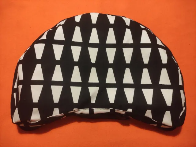 Dettagli del prodotto- Supporto per computer con un design geometrico. - Motivo di triangoli bianchi su sfondo nero. - Forma curva e imbottita. - Cuscino estraibile e lavabile. - 52 X 32 cm. - In ottime condizioni. La descrizione è stata tradotta automaticamente.
