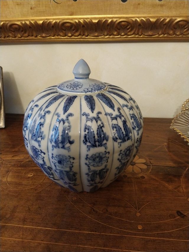 Soprammobile elegante ceramica azzurro e bianco