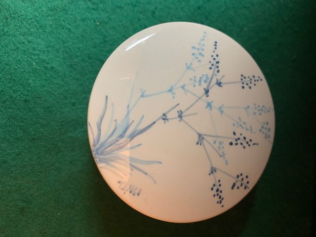 Dettagli del prodottoSoprammobile scatolina con decoro floreale, presenta una discromia all’interno Misure del prodotto