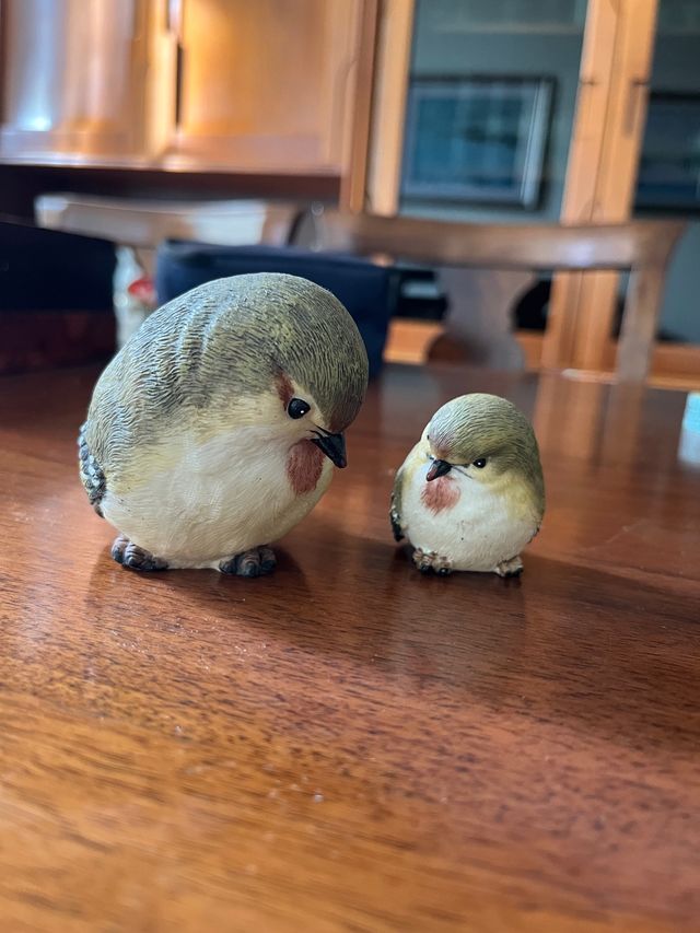 Soprammobile rappresentante 2 uccellini, il più grande di circa 7 cm di altezza e il più piccolo di circa 4, in gesso