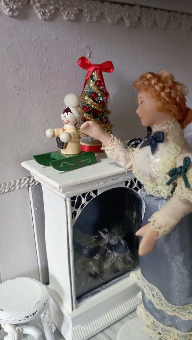 Soprammobile natalizio in miniatura per casa delle bambole in scala 1:12. - Dettagli curati e colorati. - Legno