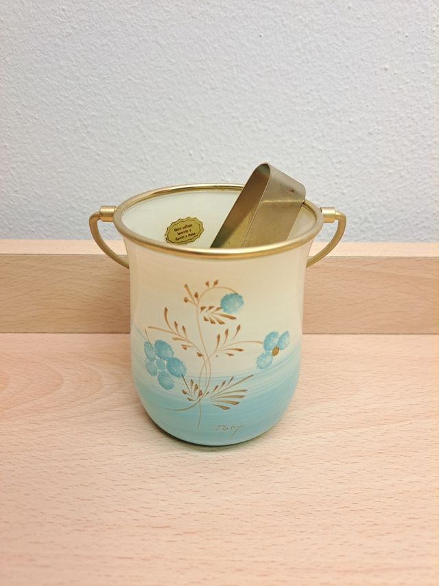 Dettagli del prodottoBel soprammobile: porta ghiaccio in vetro soffiato lavorato e dipinto a mano.