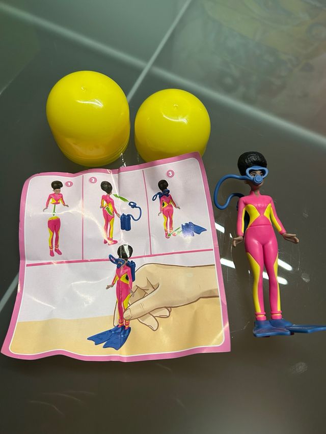 Sorpresa Kinder Applaydu con Barbie subacquea. - Include istruzioni per il montaggio. - Accessori per il gioco. - Personaggio Barbie subacquea.