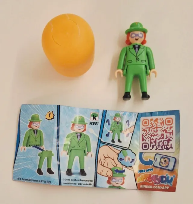Dettagli del prodottoSorpresa Kinder con personaggio Playmobil della collezione DC del 2025.