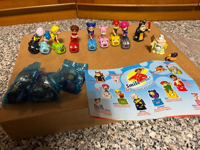 Lotto di sorpresine Kinder Smile & Go con personaggi assortiti. Manca un pezzo