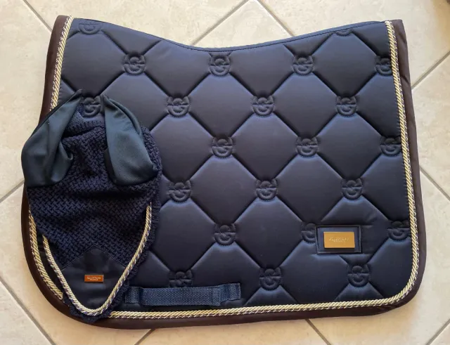 Dettagli del prodottoSet coordinato di sottosella e cuffia firmato Equestrian Stockholm.