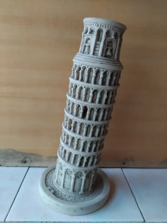 Scultura della famosa Torre di Pisa, un classico souvenir. Altezza +30cm. - Riproduzione dettagliata della Torre Pendente. - Base circolare decorata.