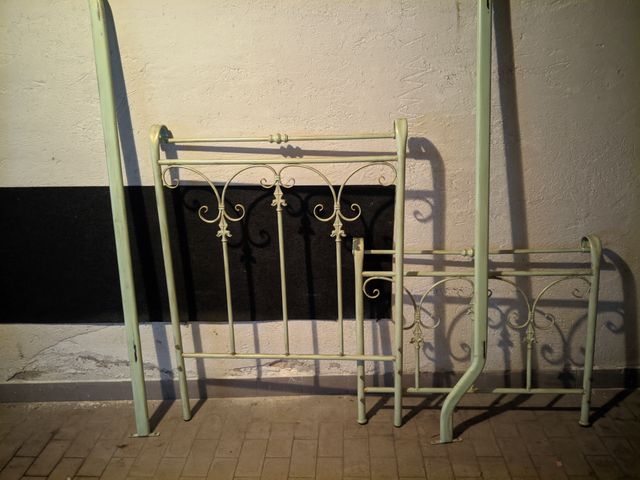 Dettagli del prodottoVendo testiera da letto singolo in ferro battuto, colore verde chiaro.