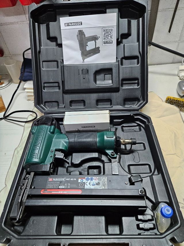 Sparapunti ad aria compressa, comprensiva di punti di varie misure. Condizioni come da foto.