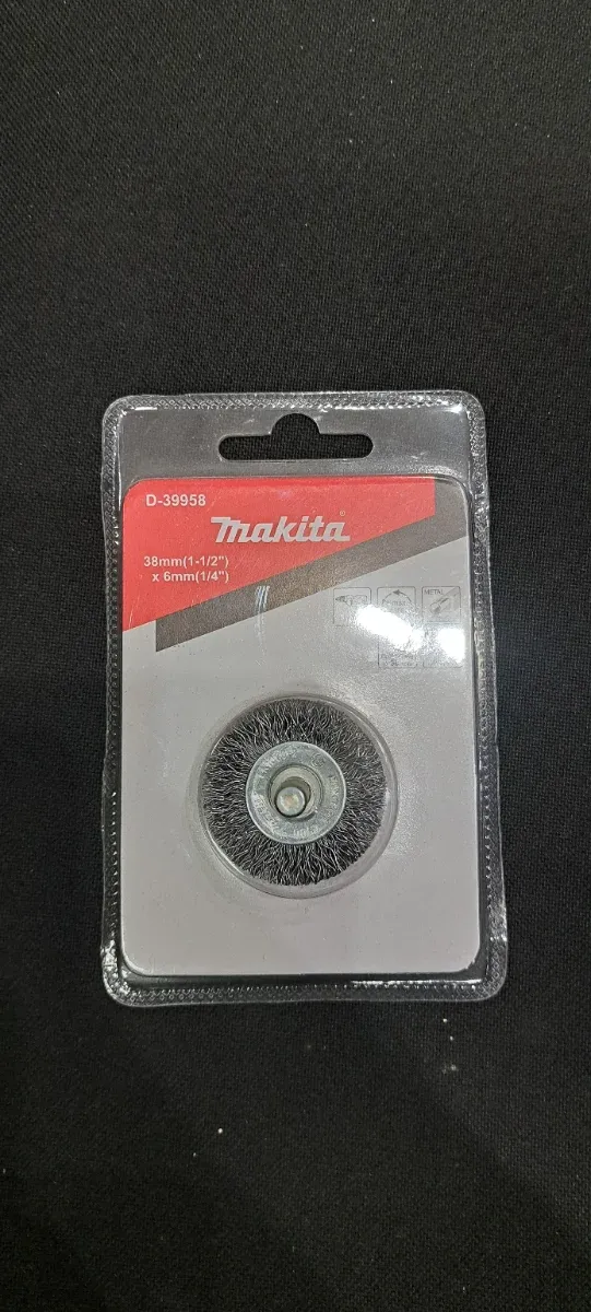 Spazzola metallica per lavori di pulizia e finitura. - Diametro: 38mm (1-1/2) - Foro: 6mm (1/4) - Marca: Makita