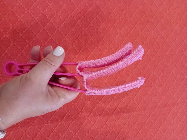 - Manico rosa in plastica resistente.