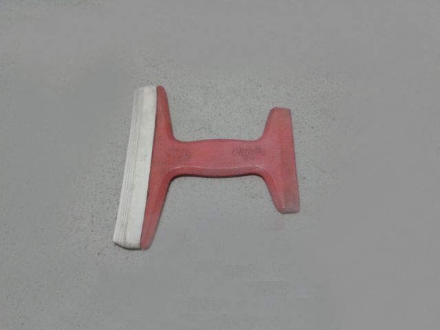 Spazzola raschia vetro di colore rosso, marca Panda, modello 4x4. - Lama in gomma bianca. - Manico a forma di H.