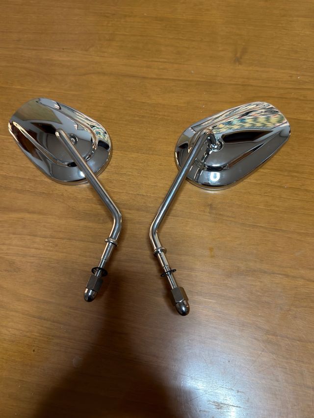 Coppia di specchietti retrovisori cromati. Nuovi smontati dalla moto appena arrivata in concessionaria ,stelo corto .