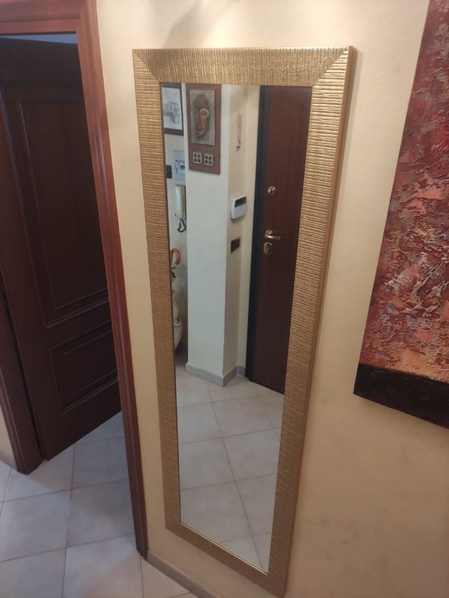 specchio a parete altezza circa 180 con cornice color oro