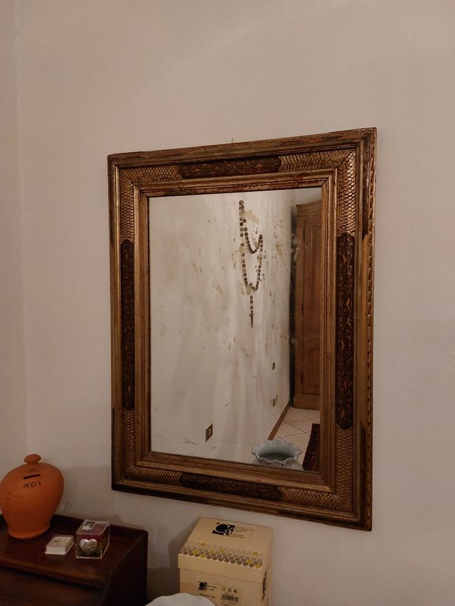 Dettagli del prodottoSpecchio antico al mercurio con cornice decorata dorata (la profondità è circa 5 cm) Misure del prodotto
