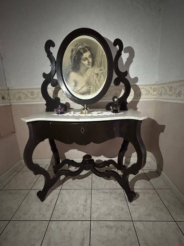 Specchio da toeletta antico con ballerina