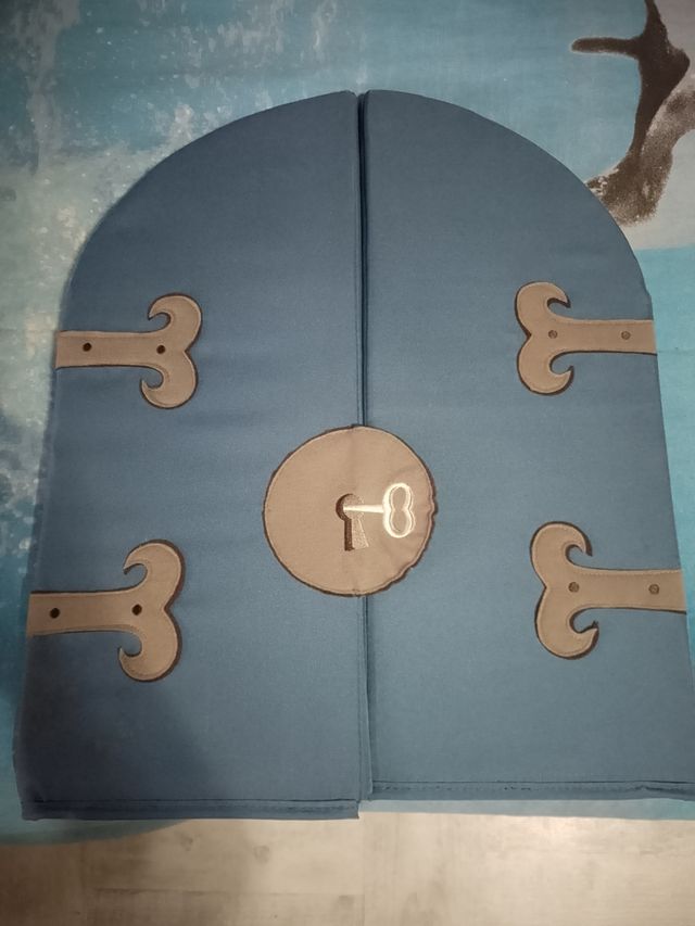 Dettagli del prodottoSpecchio a forma di portone medioevale con apertura in velcro, con scomparti per riporvi giochi e accessori ( lo specchio è plexiglass specchiato). È possibile appenderlo al muro tramite due fori .