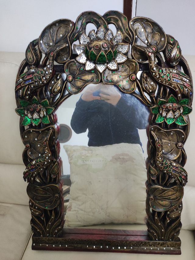 Specchio in legno decorato