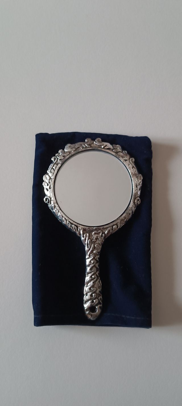 Elegante specchio in metallo di peltro con decorazioni. - Materiale: peltro - Misure: 12 cm x 6 cm