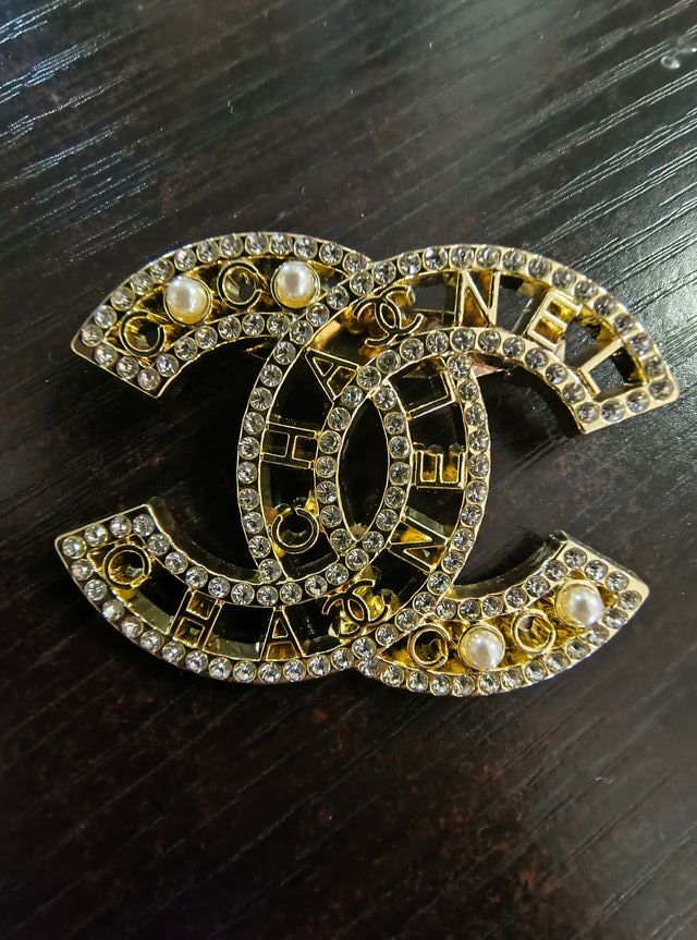 Spilla Chanel Logo CC Perle Strass Oro