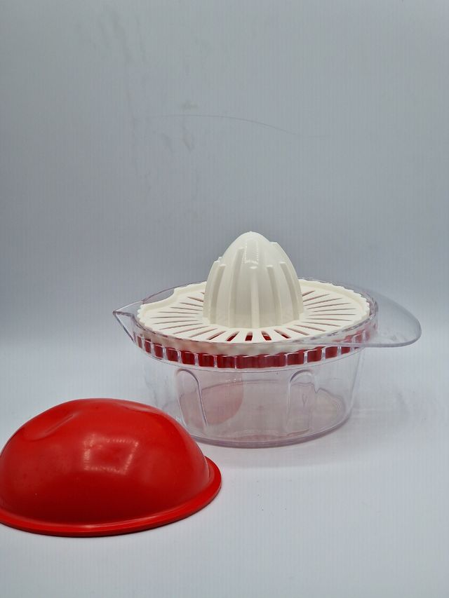 Come da foto vendo spremiagrumi completo di accessori, contenitore in plastica, con manico e beccuccio dosatore, usato in perfette condizioni.