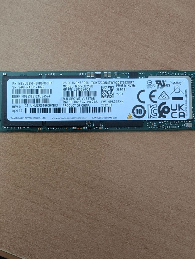 SSD NVMe Samsung da 256GB, modello MZ-VLB256B. - Capacità: 256GB - Interfaccia: NVMe - Part Number: MZ-VLB256B