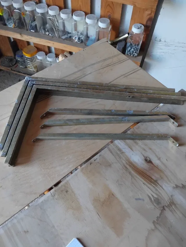 Set di staffe angolari in metallo, ideali per rinforzare o costruire strutture. - Materiale: Metallo - Forma: Angolare - Quantità: 3 pezzi con strutture portanti.