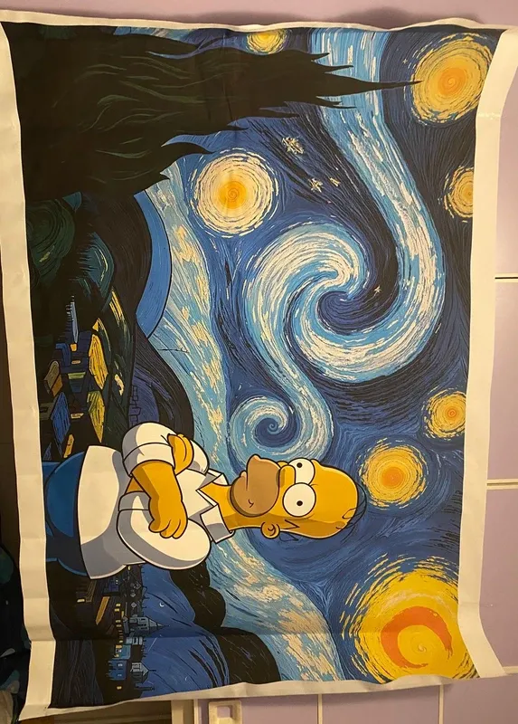 Dettagli del prodottoStampa artistica che unisce i Simpson a Notte Stellata di Van Gogh. Perfetta per gli appassionati.
