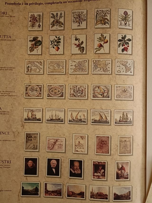 Dettagli del prodotto40 stampe. Sono 8 serie con 5 stampe ciascuna. Vendo in blocco non singola serie. Botanica, personaggi storici, Leonardo da Vinci, vecchie mappe, Venezia ... Nella prima foto ci sono tutti i dettagli. Misura 40 x 30 cm ... Alcune hanno bordo.