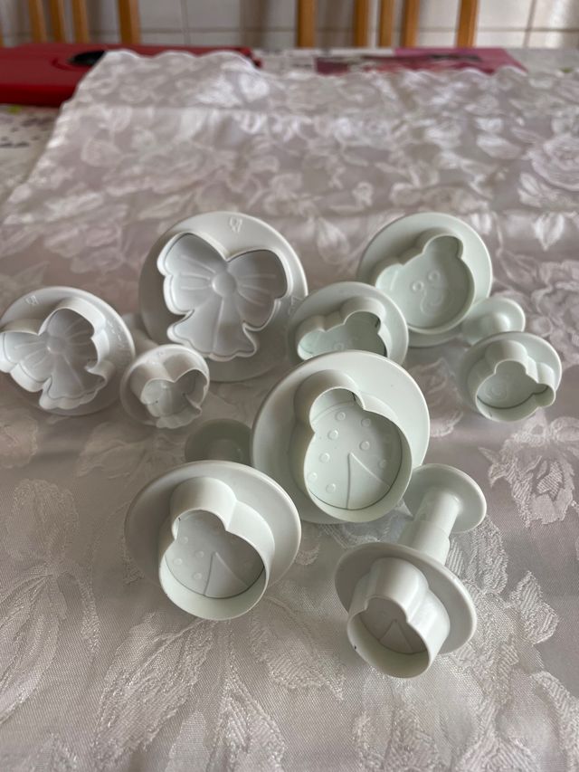Stampi ad espulsione per biscotti e pasta di zucchero 3 coccinelle 3 orsetti 3 fiocchi Prezzo per tutto 5€