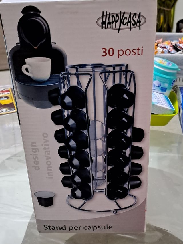 Stand per capsule di caffè in metalli. Nuovo, mai usato, ancora in confezione originale. Prodotto Happycasa. Spazio per 30 capsule.