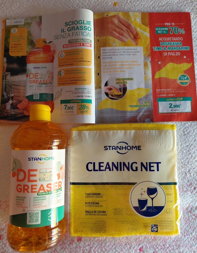 Dettagli del prodottoVendo degreaser Stanhome al mandarino e timo, 750 ml, praticamente nuovo. Insieme, una rete per la pulizia di superfici delicate. Entrambi i prodotti sono perfetti per una cucina splendente!-