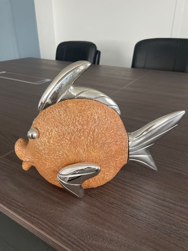 Pesce in pietra con rifiniture cromate, un poco consumate. Misure vedi foto