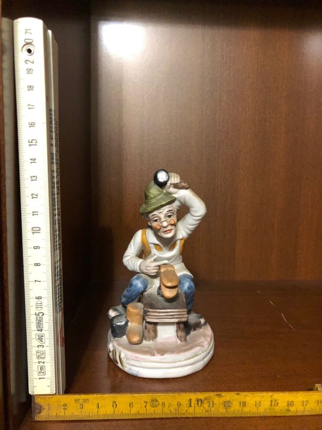 Graziosa statuetta in ceramica raffigurante un ciabattino al lavoro. Un pezzo decorativo unico. - Dettagli dipinti a mano. - Base rotonda decorata.